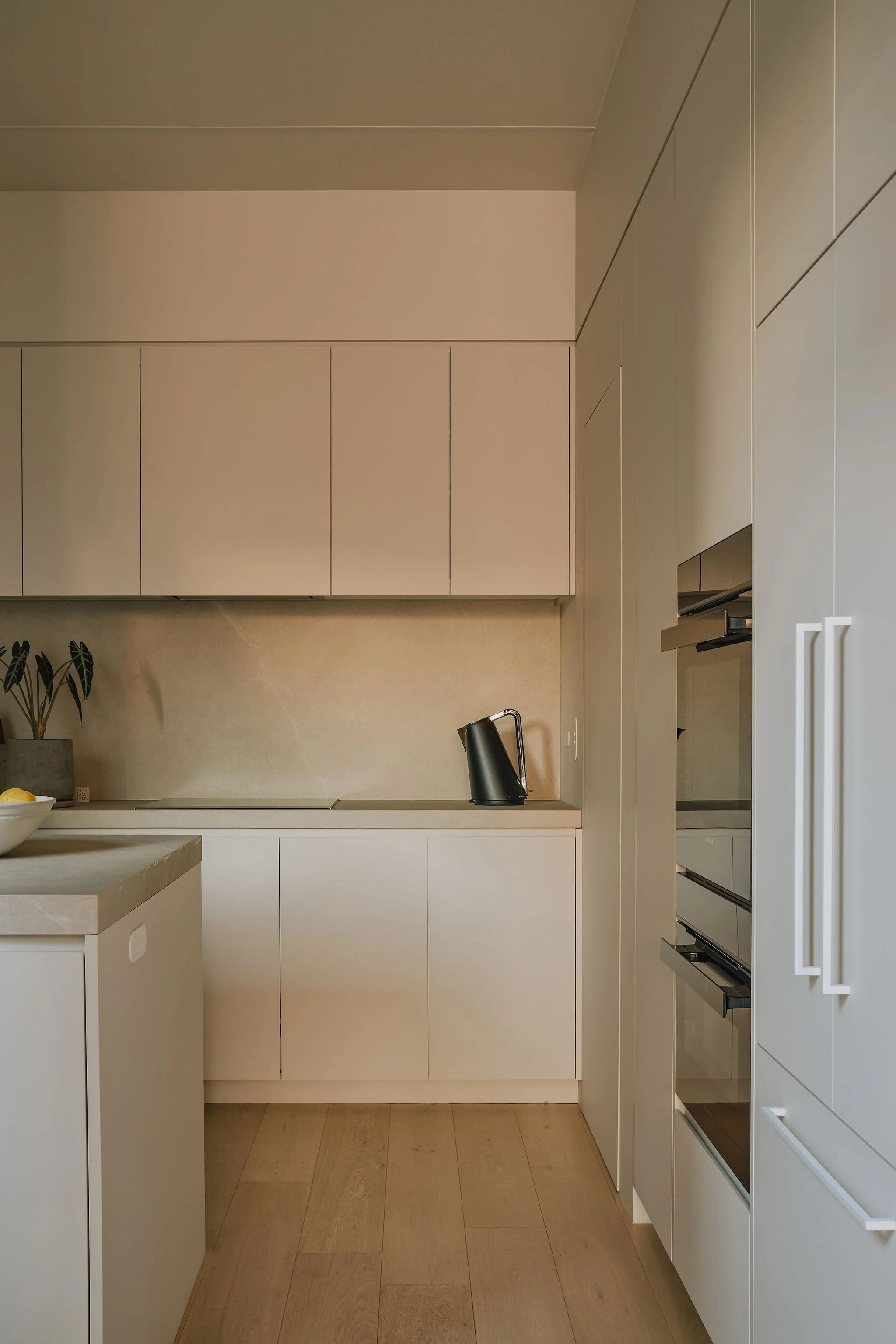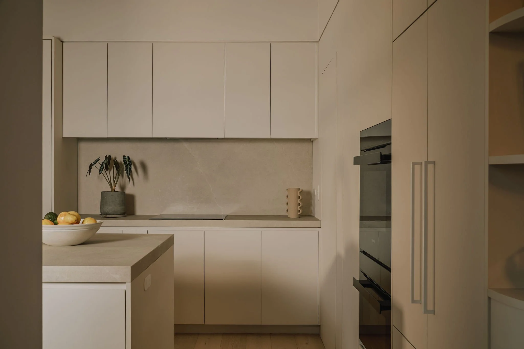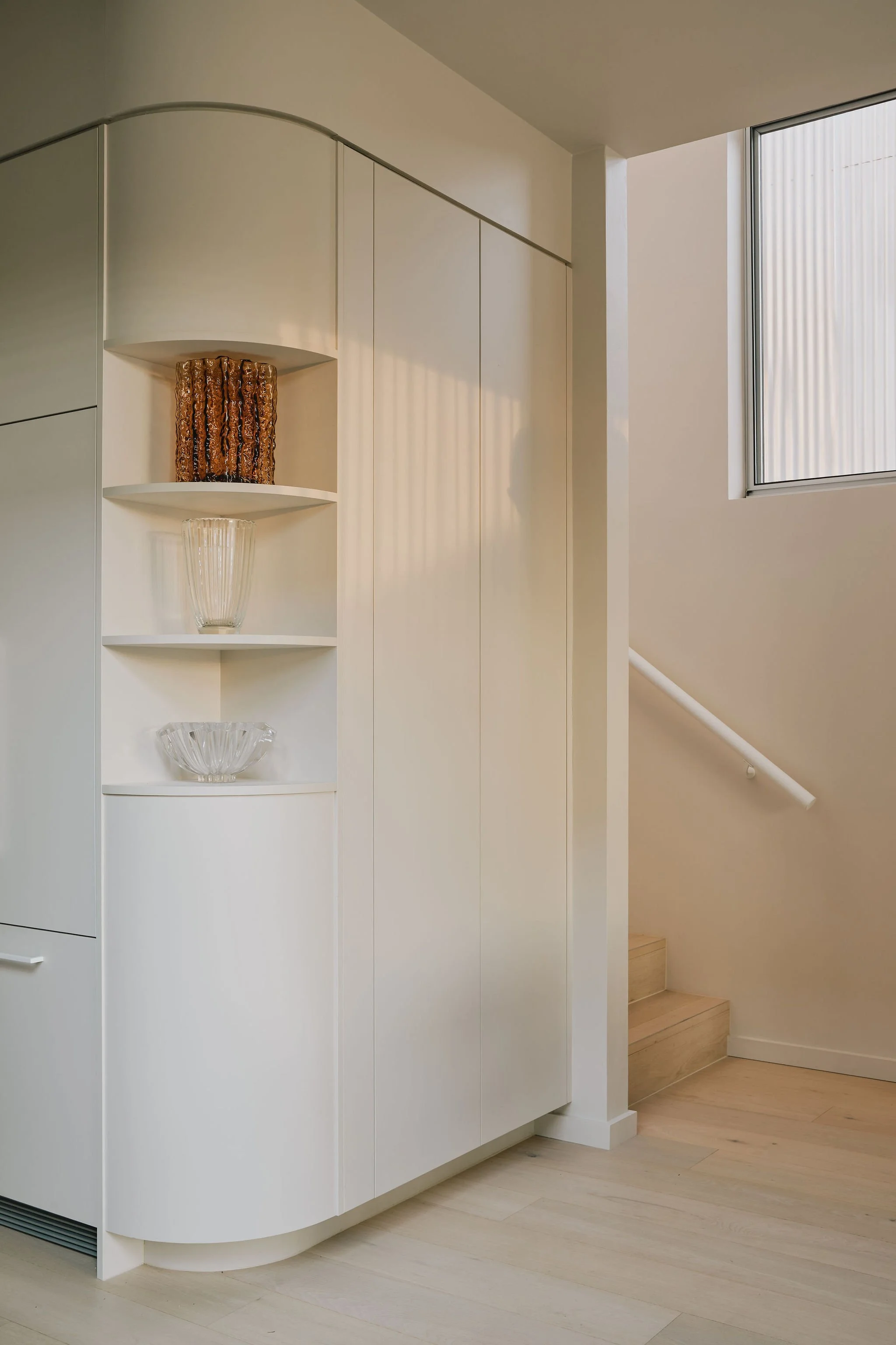 Located just a short walk from James Street, the home balances city proximity with an unmistakable sense of calm. Every detail, from the bespoke cabinetry to the soft, light-filled palette, was designed to reflect the client’s lifestyle: quiet, intentional, and deeply personal.